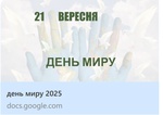 Третій тиждень навчання - 15 - 21 вересня - пройшов у нашому закладі в передчутті дуже важливого для всіх українців свята - Міжнародного дня миру!