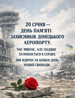 20 січня в нашій країні вшановують День пам'яті захисників Донецького аеропорту. Вони змусили захоплюватися собою навіть противника.Адже сам ворог назвав їх "Кіборгами",бо тільки роботи здатні вистояти в таких нелюдських умовах.